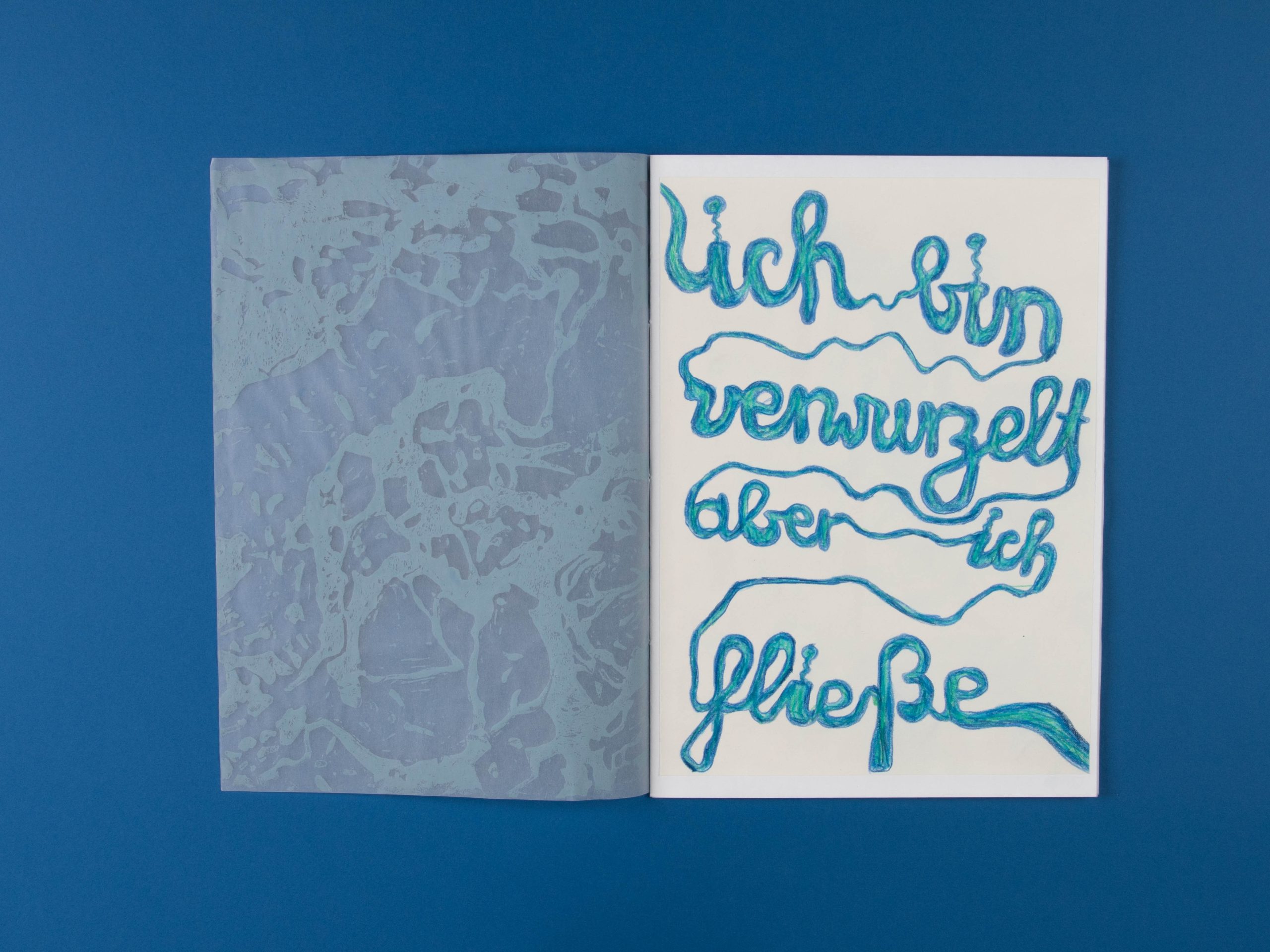 Heft „Ich bin Wasser“ | 2023 | Linoldruck, Bunstift & Collage | Fotos von mir