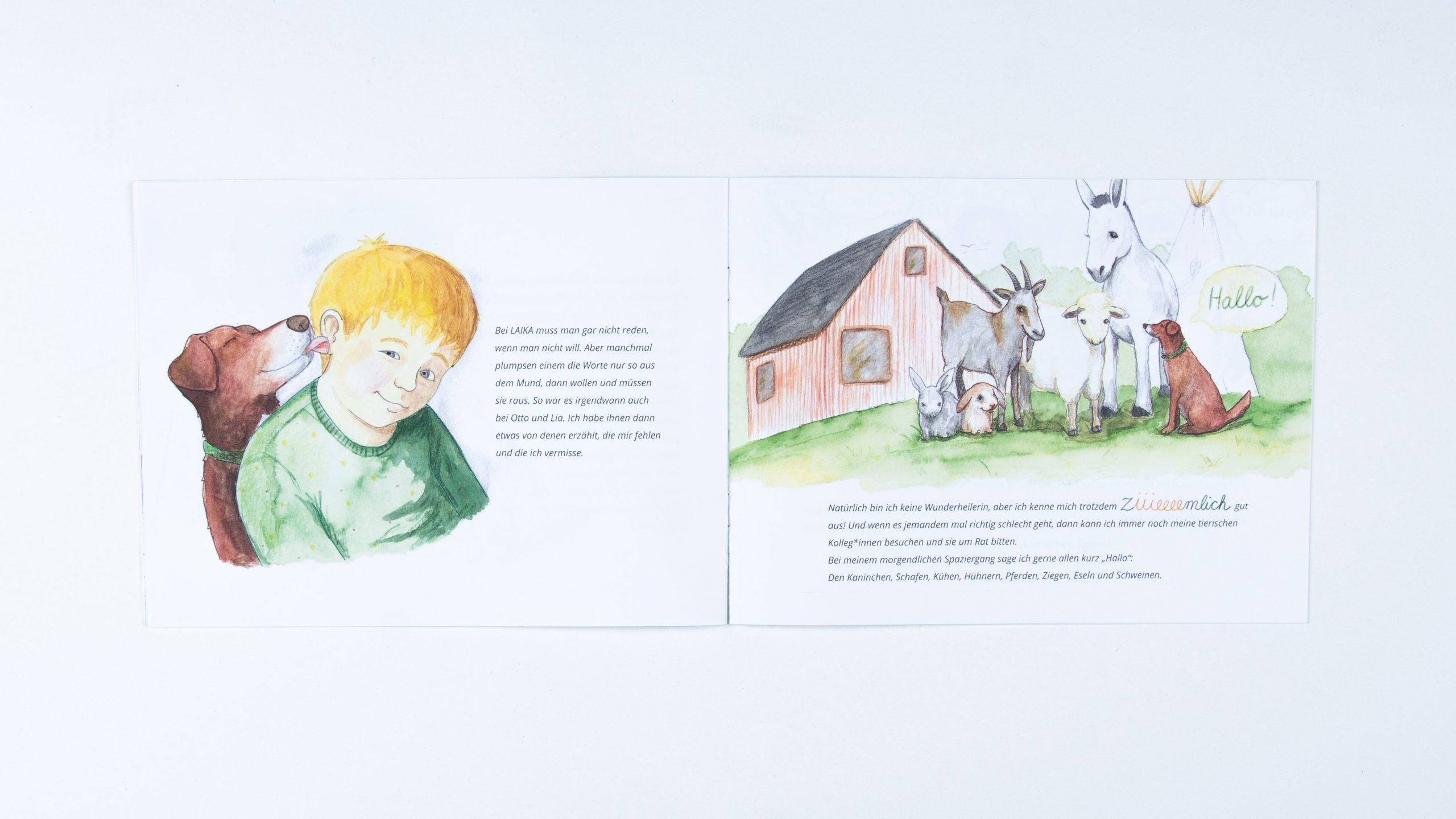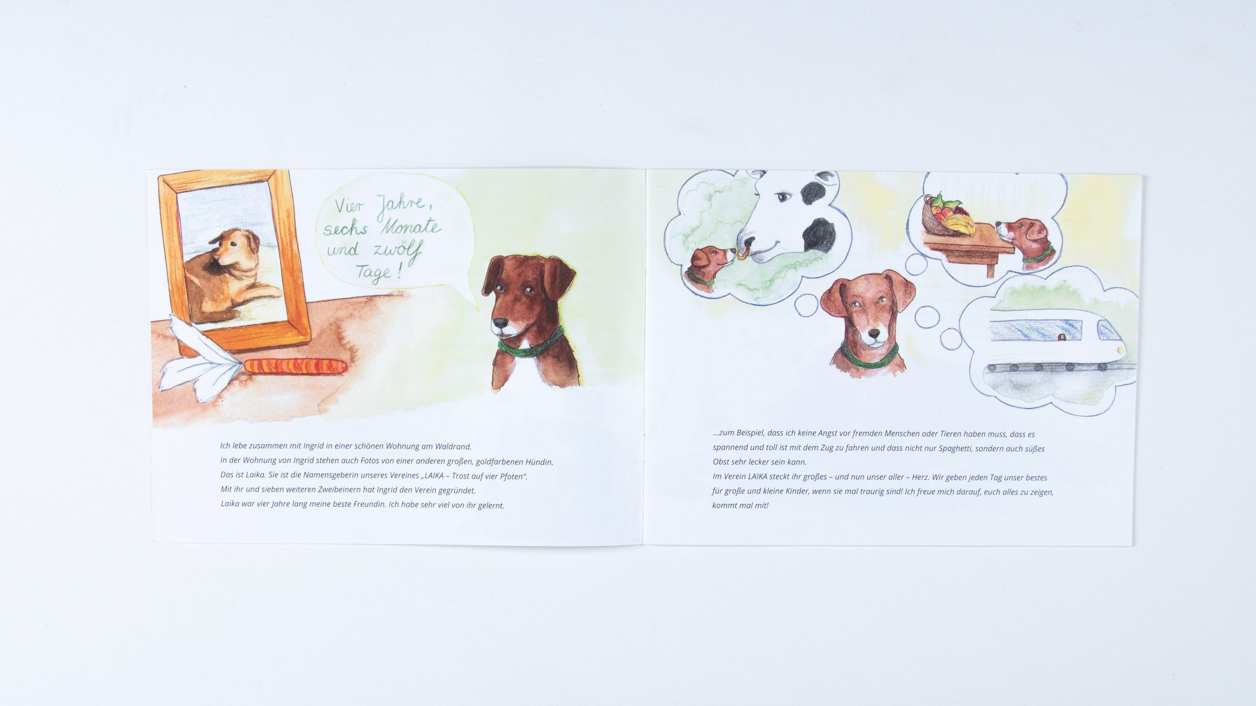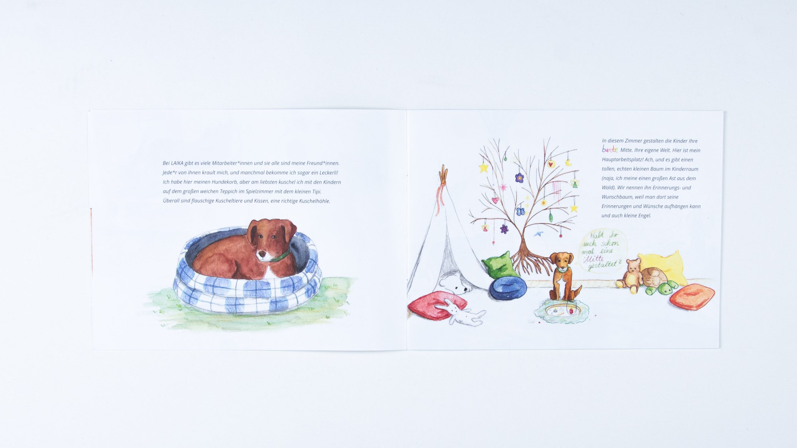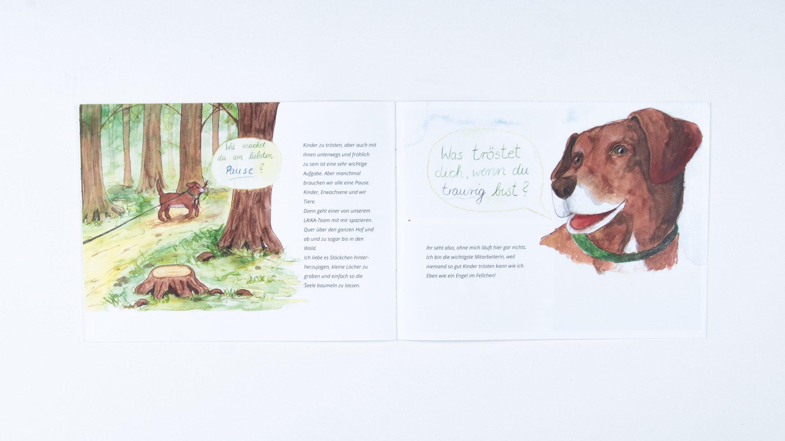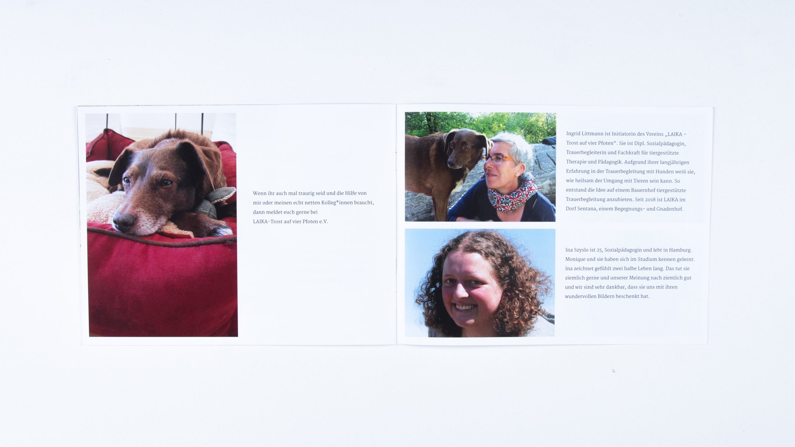 Infobroschüre zum Verein LAIKA | 2021 | Aquarell & Bunstift | Text von Monique Kluß und Inken Horn | Illustrationen und Fotos von mir